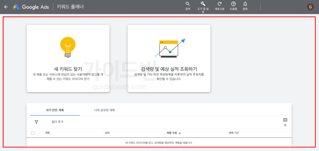 구글 애드워즈 키워드 플래너에 접근하려면 다음 단계를 따르세요: