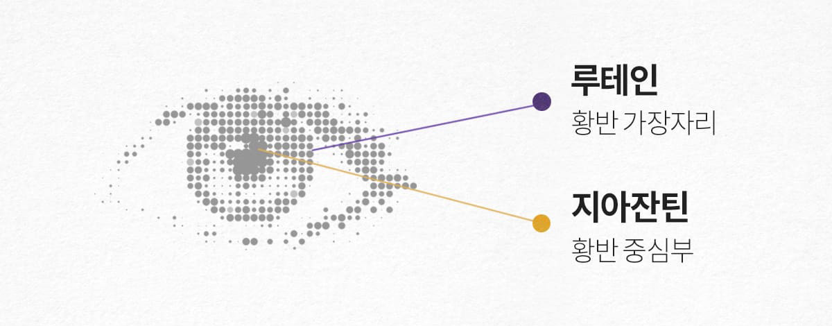 루테인은 눈의 망막, 특히 황반에 고농도로 존재하는 카로티노이드 계열의 항산화 성분이다. 황반은 시력의 대부분을 담당하는 중요한 부위로, 루테인은 황반색소밀도를 유지하여 자외선, 블루라이트와 같은 유해한 빛으로부터 눈을 보호하는 역할을 한다.