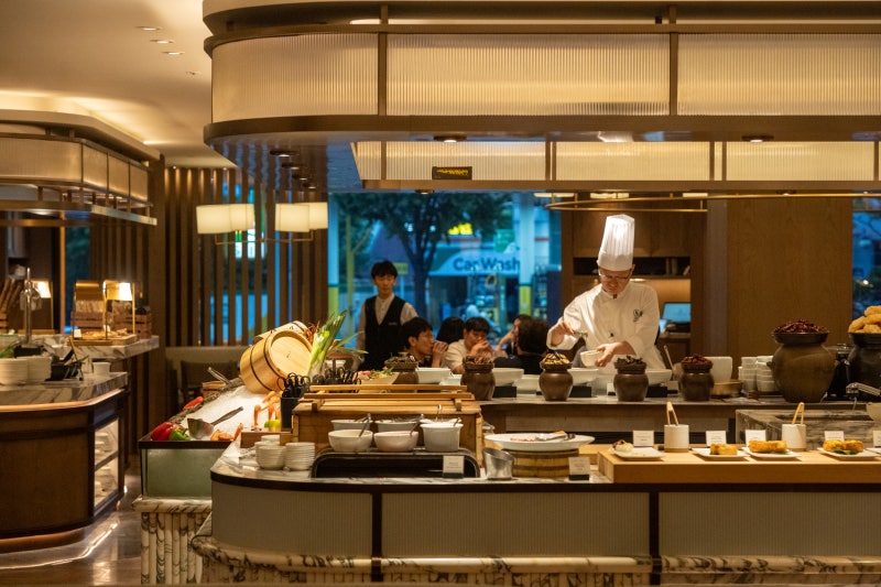 이곳의 규모는 실로 압도적입니다. 한 번에 수백 명의 손님을 수용할 수 있는 대형 뷔페로, 150명 이상의 직원들이 쉴 새 없이 움직이며 최상의 서비스를 제공합니다. 이러한 대규모 운영에도 불구하고, 각 요리의 퀄리티와 맛은 결코 타협하지 않습니다. 이는 신종철 셰프의 철저한 관리와 뛰어난 리더십 덕분입니다.