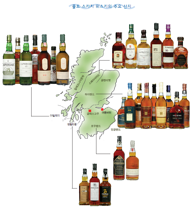 싱글몰트 위스키: 하나의 증류소에서 맥아로만 만든 위스키.