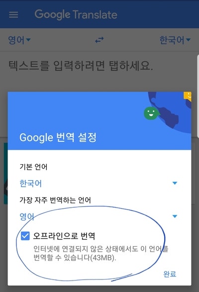 구글 번역은 가장 광범위한 오프라인 번역 기능을 제공합니다.