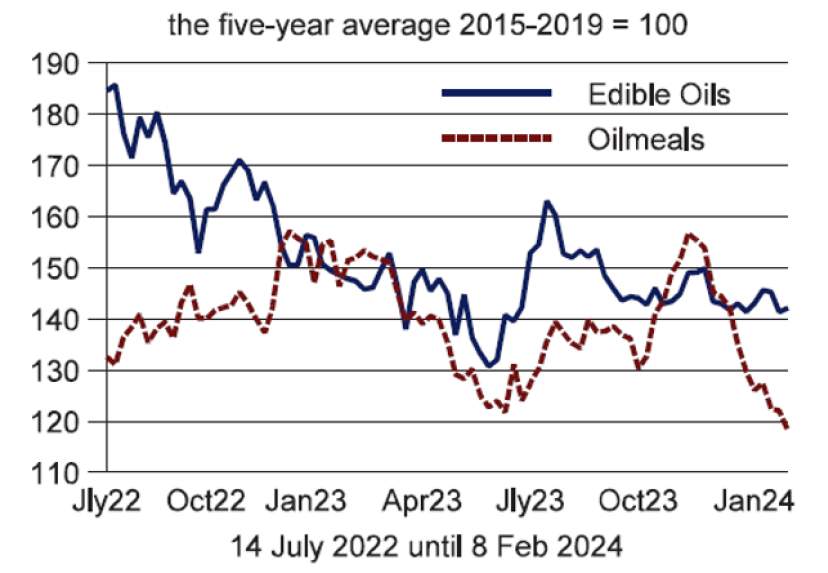 지난 주부터 2월 8일까지 soya oil과 팜유의 주도로 식물성 오일 가격이 회복되었습니다.