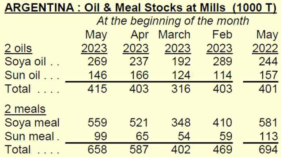 soya meal 수출량은 가파르게 감소할 것이고, 아르헨티나 soya oil 수출량은 바이오디젤 원료로 감소한 국내 soya oil 소비량으로 인해 완만하게 감소할 것입니다. 올해 바이오디젤 생산량이 2022년 생산량 1.9백만톤으로부터 사실상 절반 정도 줄어들 것으로 추정됩니다.