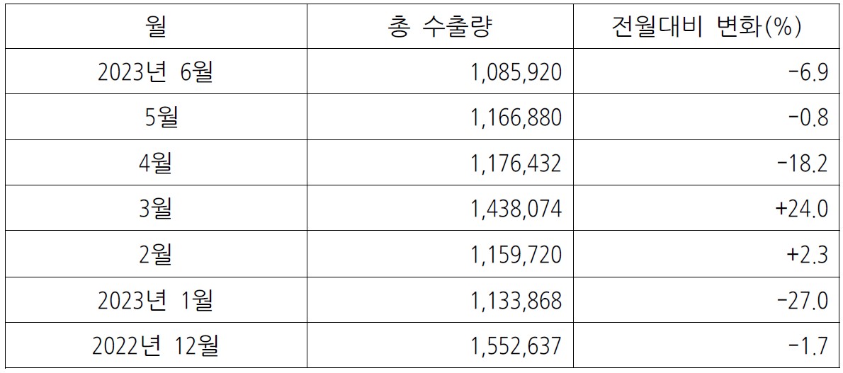 ※ 월별 수출량 변화(톤)