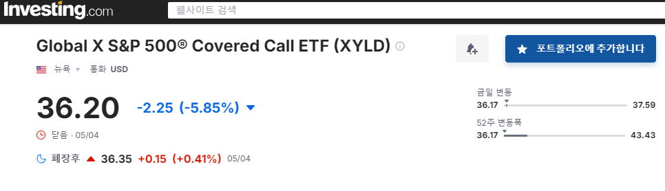 • 시장 리스크: S&P 500 지수 하락 시, XYLD의 가치도 하락할 수 있습니다.